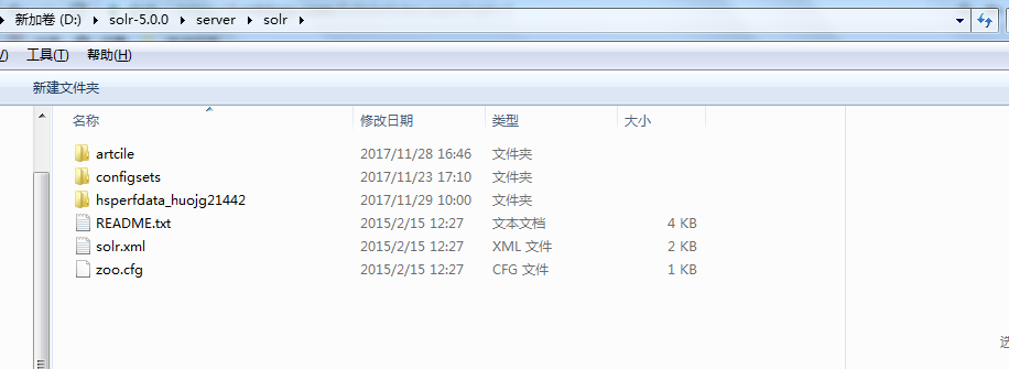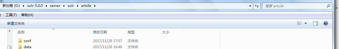 2.我们创建core的文件夹。 我创建的core的名字为artcile文件,里面创建data文件夹和conf文件
