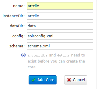 然后我们点击 add core按钮。完成了core的创建。