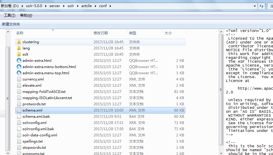 我们回到创建的artcile目录中,找到conf中的scheme.xml 如下图: