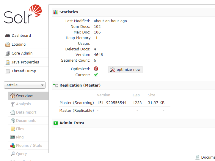 大家看到左边有个 core admin菜单,点进去。