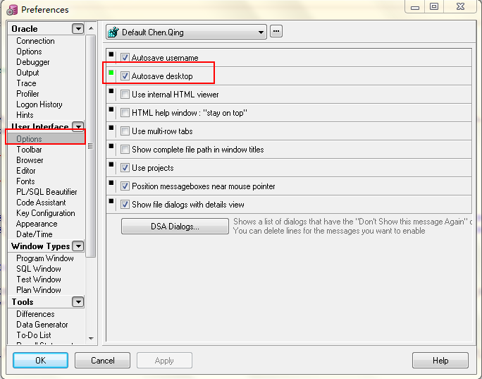 plsql启动后自动打开上次编辑文件