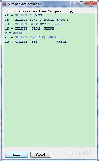 4.点击 Edit ,输入自己常用的代码,保存,点击保存的时候会出现一个路径选择框,直接点击保存就可以了,全部保存完后就可以测试了(图中的代码是我常用的,大家可以参考)