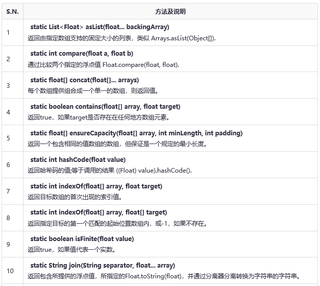 System.out.println("5.0 position in list "+ Floats.indexOf(floatArray, 5.0f));