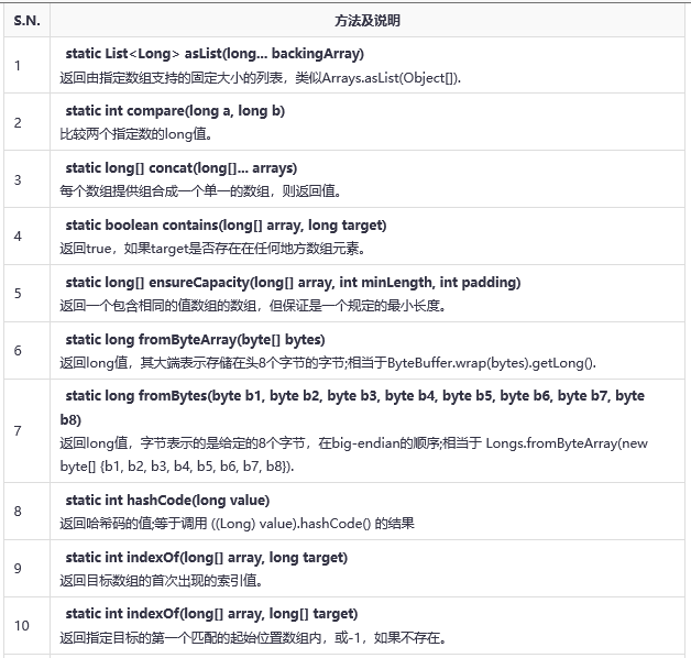 以下是com.google.common.primitives.Longs类的声明: