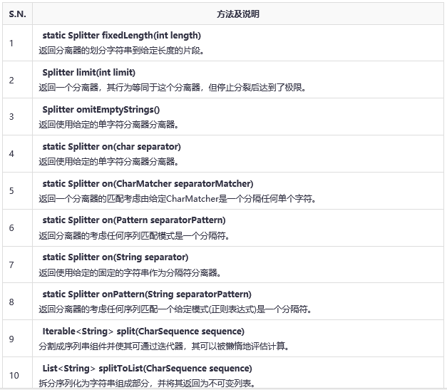 以下是com.google.common.base.Splitter类的声明: