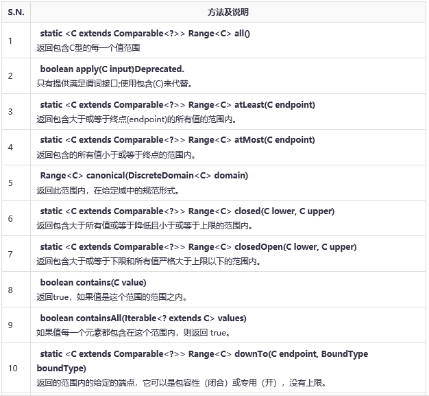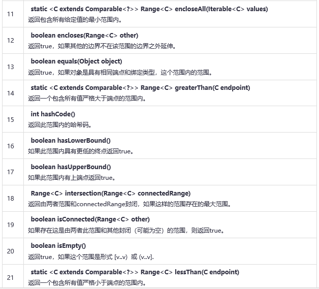 Range<Integer> range4 = Range.closedOpen(0, 9);