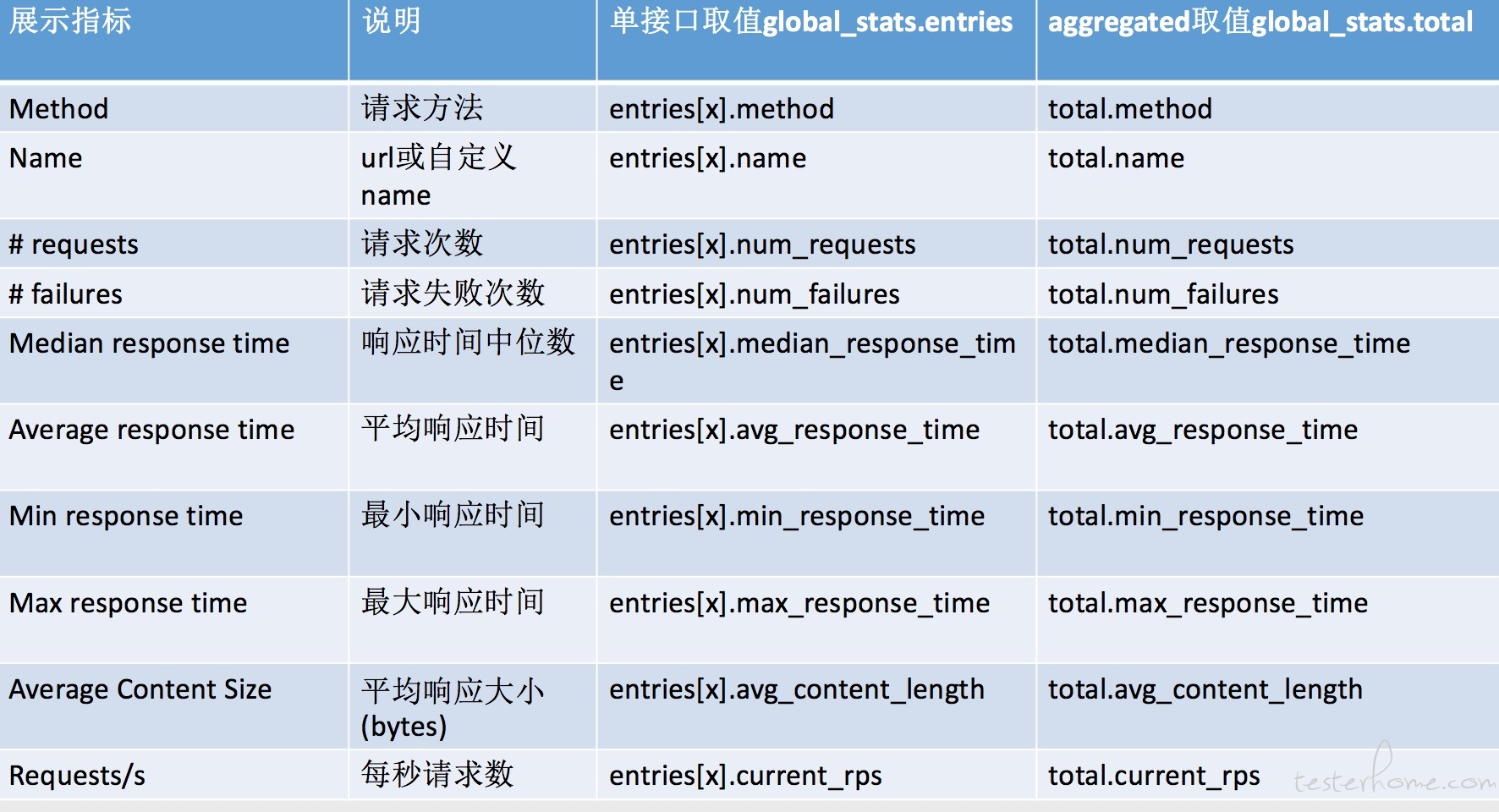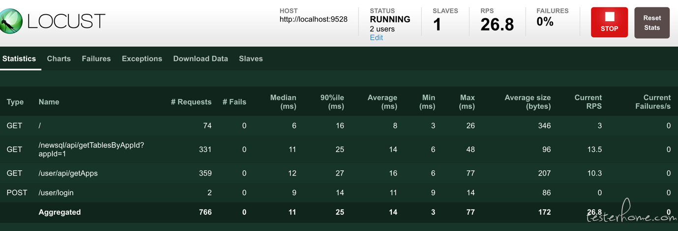 Locust核心的指标其实就4个: