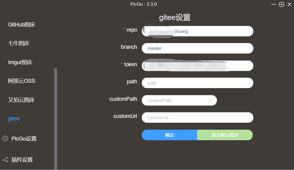 repo:仓库地址,格式为:gitee账号名/仓库名,如 zhangsanfeng/tuchuang