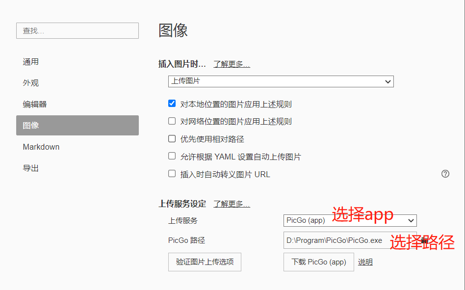 打开typora页面,文件 -- 偏好设置 -- 图像 -- 设置参考(如下图)-- 验证图片上传选项 -- 验证成功 -- 配置结束