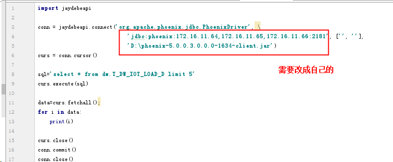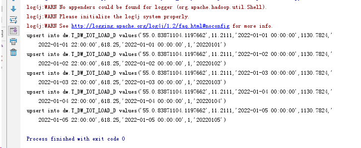 1 import jaydebeapi 2 import random 3 import pandas as pd 4 from faker import Faker 5 fk = Faker(locale="zh_CN") 6 conn=jaydebeapi.connect('org.apache.phoenix.jdbc.PhoenixDriver', 7 'jdbc:phoenix:111.22.11.1,111.22.11.2,111.22.11.3:2181:/hbase-unsecure',{}, 8 'D:\squirrel-sql-3.9.0\lib\phoenix-5.0.0.3.0.0.0-1634-client.jar') 9 10 curs=conn.cursor() 11 12 # tss=int(time.mktime(time.strptime("2020-08-31 00:00:00", "%Y-%m-%d %H:%M:%S"))) 13 part_dt=pd.date_range('20220110','20220111',freq='1d') 14 15 device_id='7.0.76807.125421' 16 17 e2=random.randint(1,40); 18 19 for dt in part_dt: 20 21 sql=f''' 22 upsert into "DW"."DW_FACT_FIXED_WP_D" values ('{device_id}','{dt.strftime('%Y-%m-%d')} 00:00:00','{dt.year}','{dt.month}','{dt.day}','510000','I51481','10','1','378093565707086',10,10,20,null,null,null,null,30,{random.randint(1,40)},10,110,'{dt.strftime('%Y-%m-%d')} 00:30:00','{dt.strftime('%Y-%m-%d')} 00:30:00',0,'{dt.strftime('%Y%m%d')}','2') 23 24 ''' 25 print(sql) 26 curs.execute(sql) 27 28 # point_value += 100 29 curs.close() 30 conn.commit() 31 conn.close() 32 # result=curs.fetchall() 33 # for x in result: 34 # print(x)