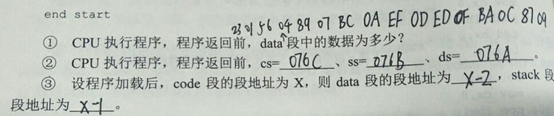 ② 执行完实现加运算的代码后,逻辑段c 的8 个字节: