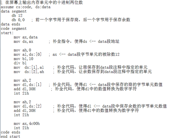任务1:补全程序 t1.asm,完成在屏幕上输出内存单元中的十进制两位数。