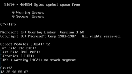 任务一和任务二的目的都是在dosbox界面上输出数字,锻炼了div指令的应用与进行循环的能力,在输出有空格相间的二位数字时要使用两次循环。任务三的目的则是显示不同底色与颜色的字符串,对于输入之前定好的数字与底色颜色的对应关系还不是很理解。