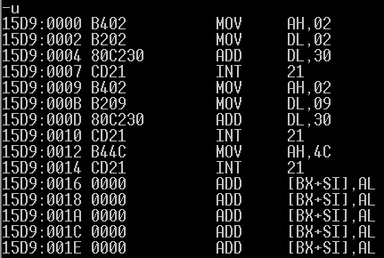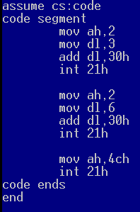 (2)将line4中dl值改为二,将line9中dl值改为九,重新汇编、连接、运行。