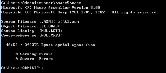 2.程序 t1.asm 进行汇编、连接、运行、调试。