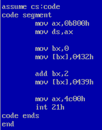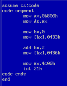 (2)重新打开 t2.asm,尝试将源代码中 line7 的 0433h→0432h,line10 的 0436h→0439h, 然后重新汇编、连接,得到可执行文件 t2.exe。