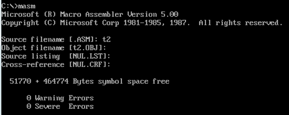 (1) 对 t2.asm 进行汇编、连接后,得到可执行文件 t2.exe。运行 t2.exe,观察程序运行