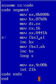 1.综合使用 loop,[bx],编写完整汇编程序,实现向内存 b800:07b8 开始的连续 16 个