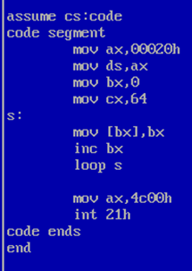 loop,[bx],编写完整汇编源程序,实现向内存 0:200~0:23F 依次传送数据