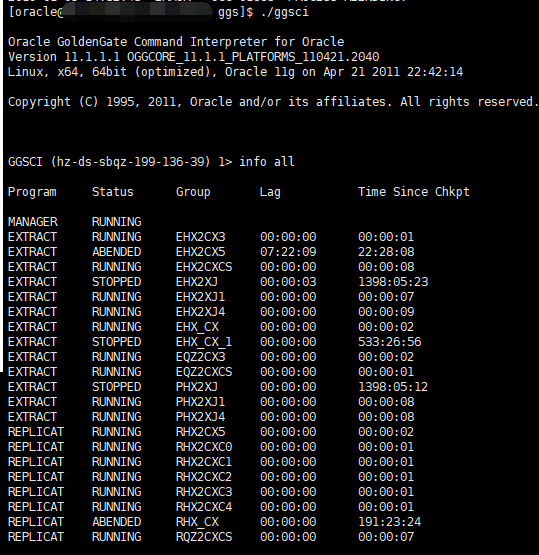 1.chmod a+x ogg.py 2.chmod a+x ogg.sh 3.nohup ./ogg.sh & 4.查看状态:ps -ef |grep ogg
