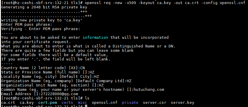 openssl req -new -x509 -keyout ca.key -out ca.crt -config openssl.cnf