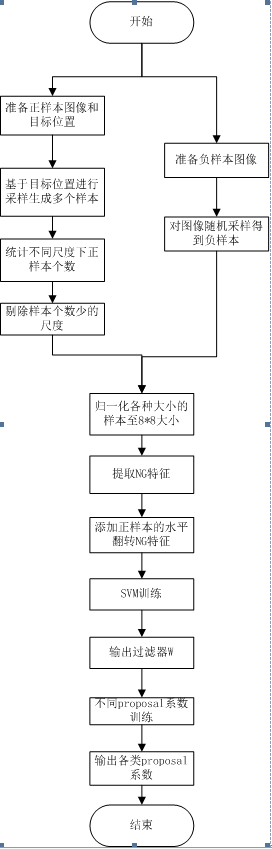 算法首先,对每张图像上,可能的所有标注框,采样生成不同尺度(该尺度在一定经验值范围内)的样本位置,并计算新生成的正样本与原始样本重叠率,保留重叠率超过50%的,重新归一化到8*8大小,计算新生成的有效正样本的梯度特征,并在水平方向翻转,最终保存新生成样本8*8的梯度特征与该特征的水平翻转特征作为xP.