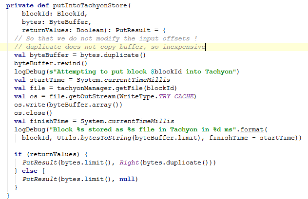 这里主要看putIntoTachyonStore方法