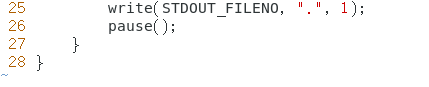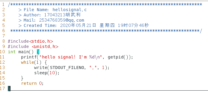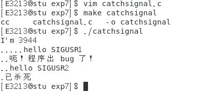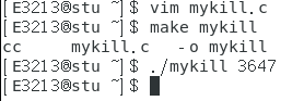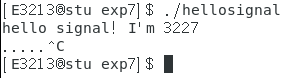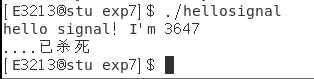 继续运行之前的程序等待有信号到来,在另外一个终端完成上面程序的输入并编译,运行的时候把3647作为参数: