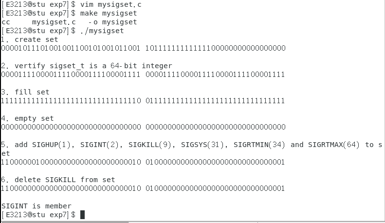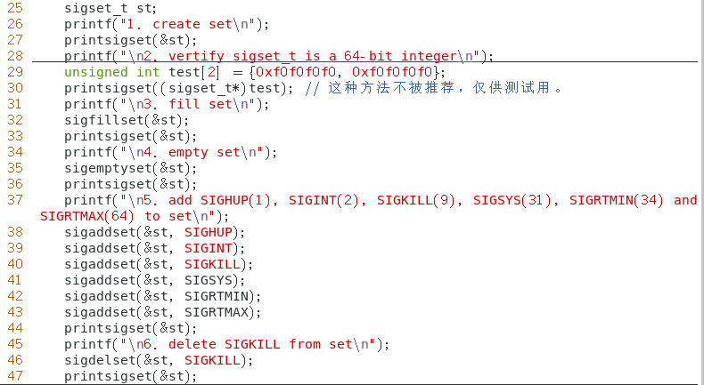 然后通过该函数查看,信号集操作函数对信号集操作后的结果: