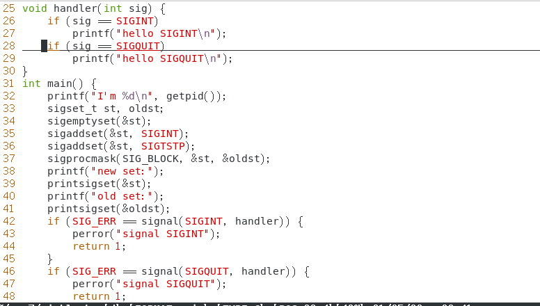 1.当程序运行的时候, Ctrl+C 进入 handler ,然后立即 Ctrl+Z 发现 handler 还未执行完就被SIGTSTP 打断.