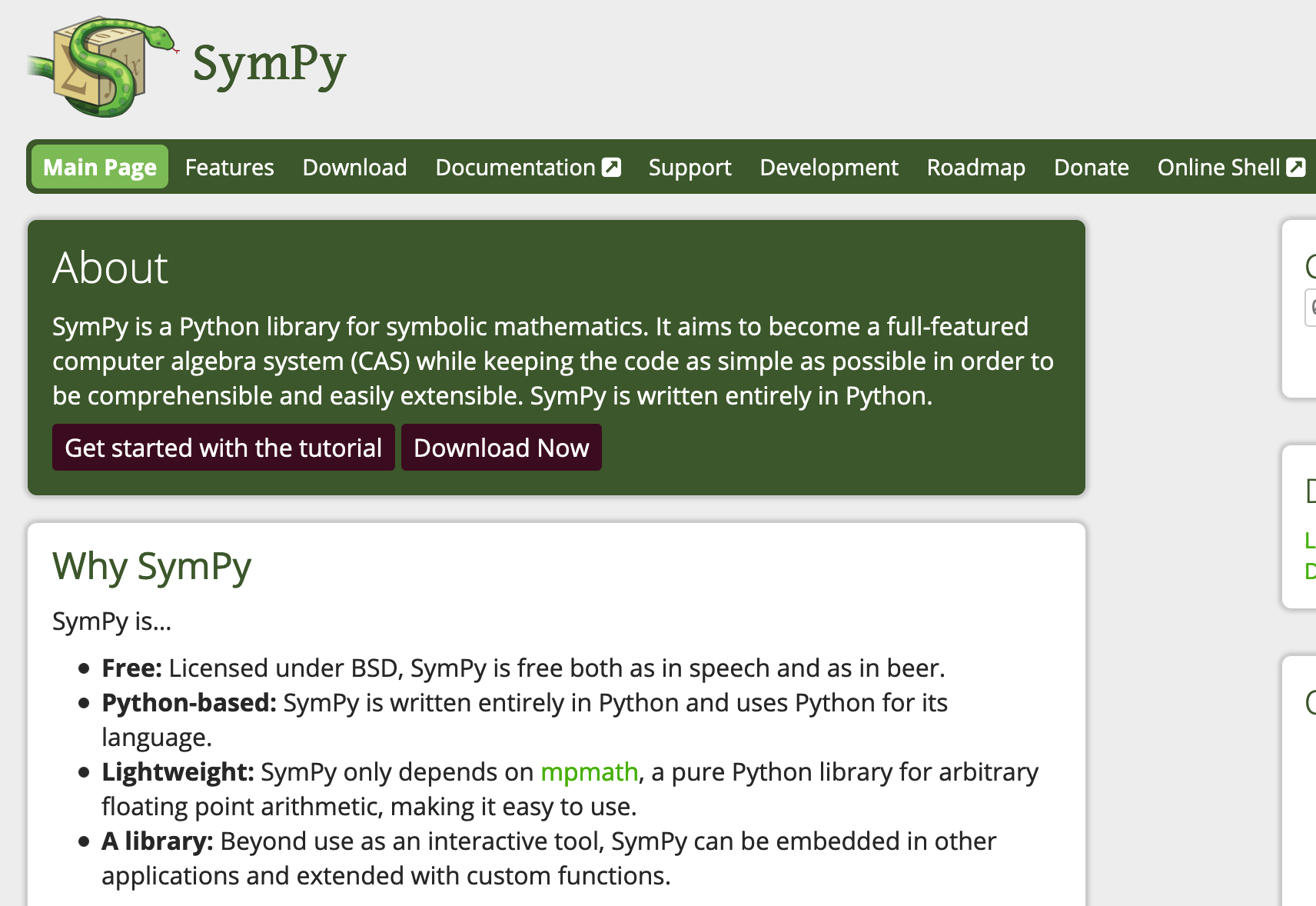 sympy是一个Python的科学计算库,用一套强大的符号计算体系完成诸如多项式求值、求极限、解方程、求积分、微分方程、级数展开、矩阵运算等等计算问题。