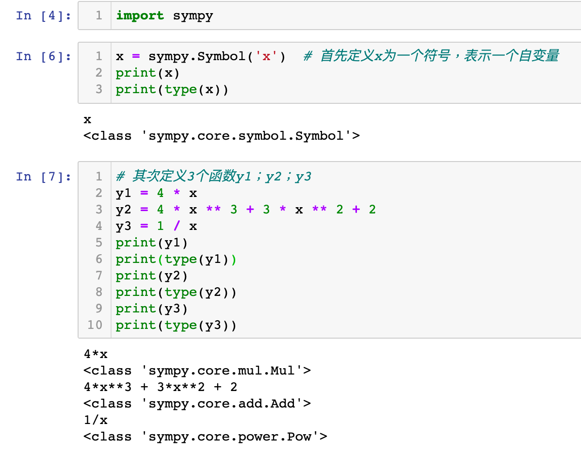 # 求导使用sympy.diff函数,传入2个参数:函数表达式和变量名