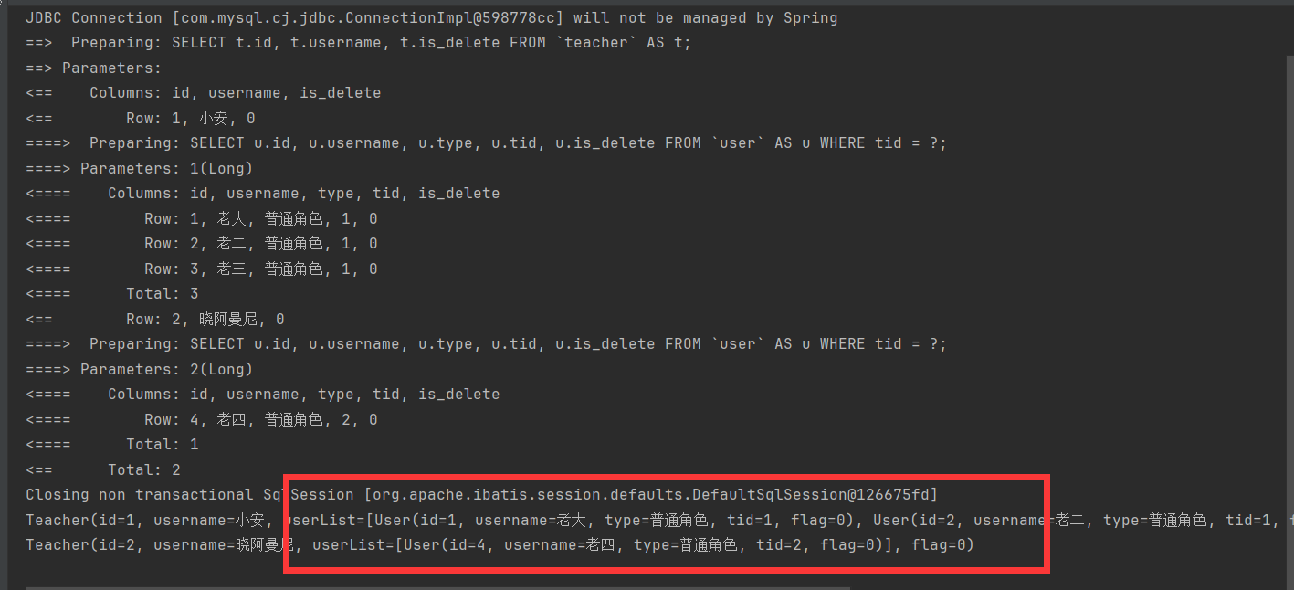 <association column="tid" property="teacher" javaType="Teacher" select="getTeacher"/>