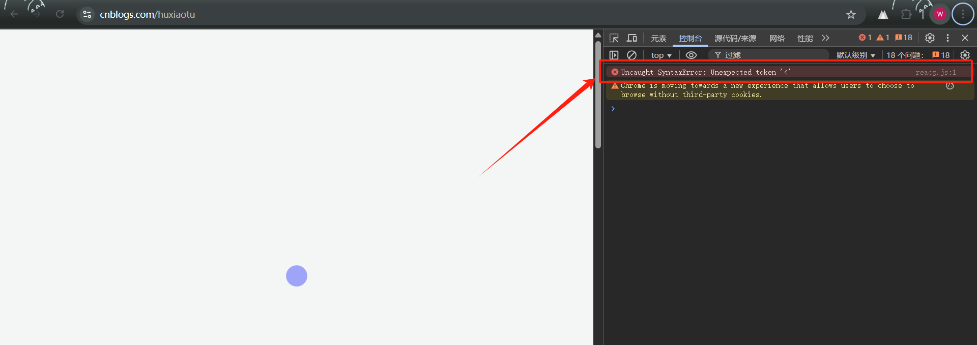 访问自己的博客园时页面一直加载中,打开控制台提示 reacg.js:1 文件报错 “Uncaught SyntaxError: Unexpected token '<'”。