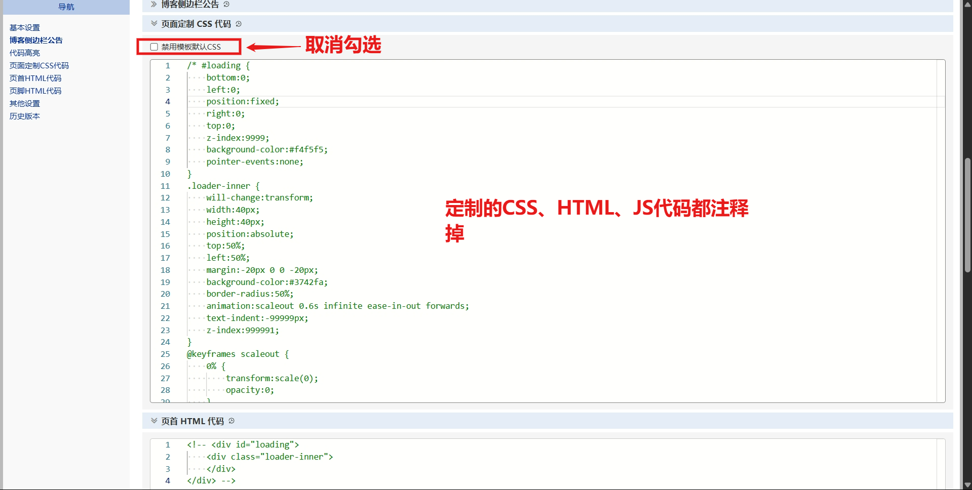 注释掉自定义的 CSS、HTML 和 JS 代码可快速解决问题