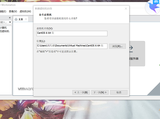 虚拟机名字也是自己取,再选择虚拟机存放的位置,点击下一步