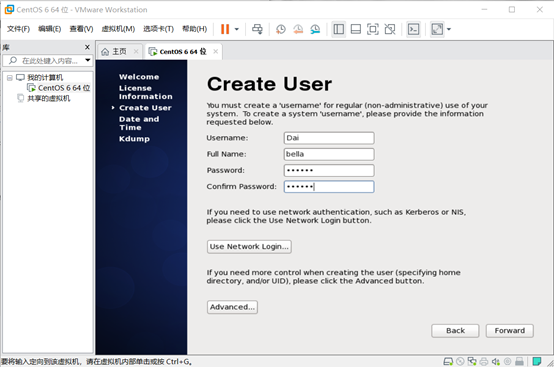 用户登录。,用刚刚设置的密码登录,一个虚拟机就创建好了