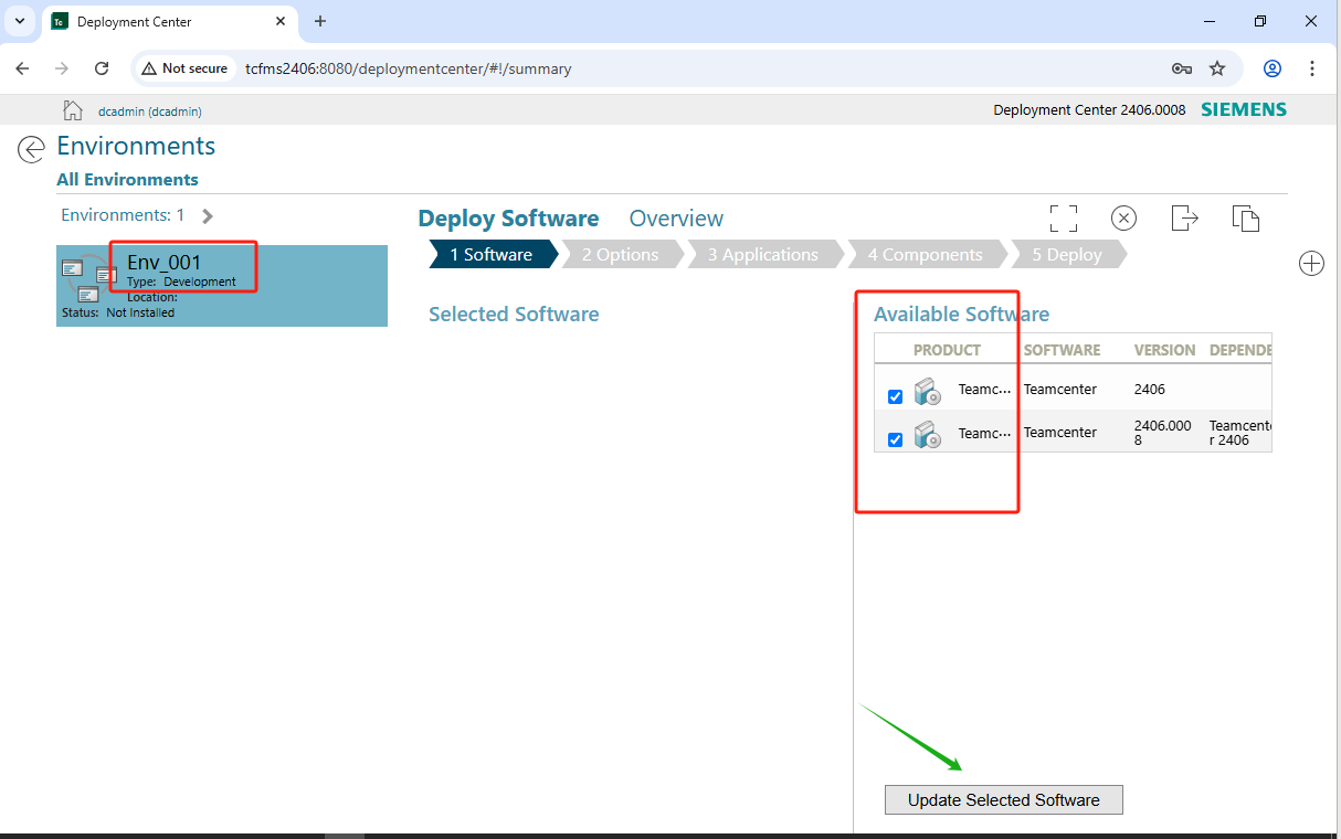 4. Software 界面选中TC2406Main包和Service Pack两个安装源,然后点击“Updae Selected Software”按钮。