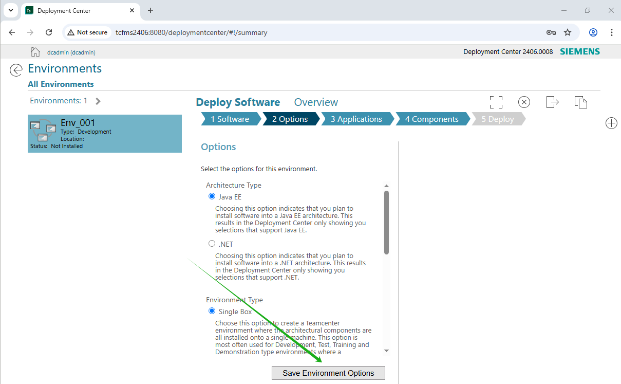 5. Options的页面不做任何修改,点击“Save Environment Options”按钮。