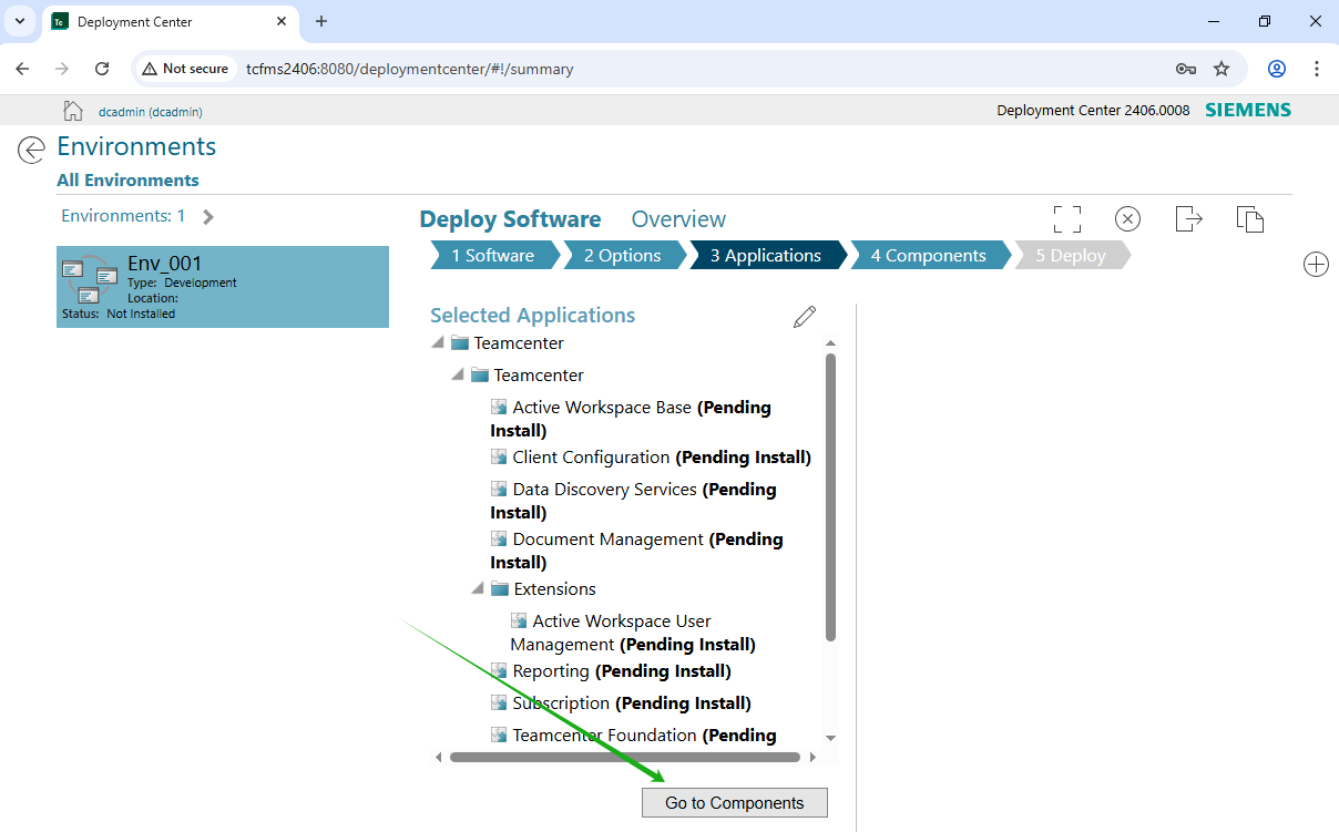 6. Applications页面也不做任何修改,点击“Go To Components”按钮。