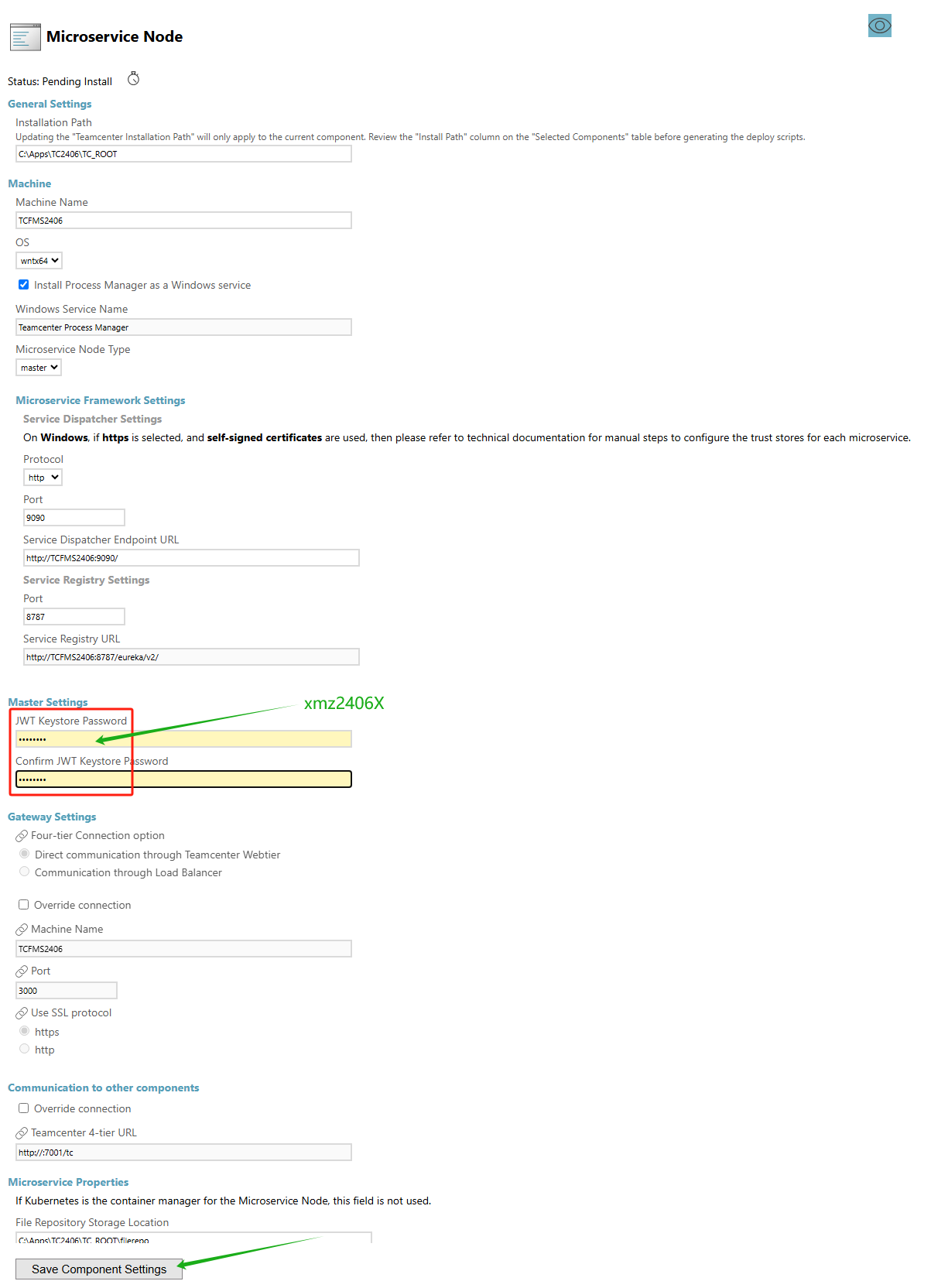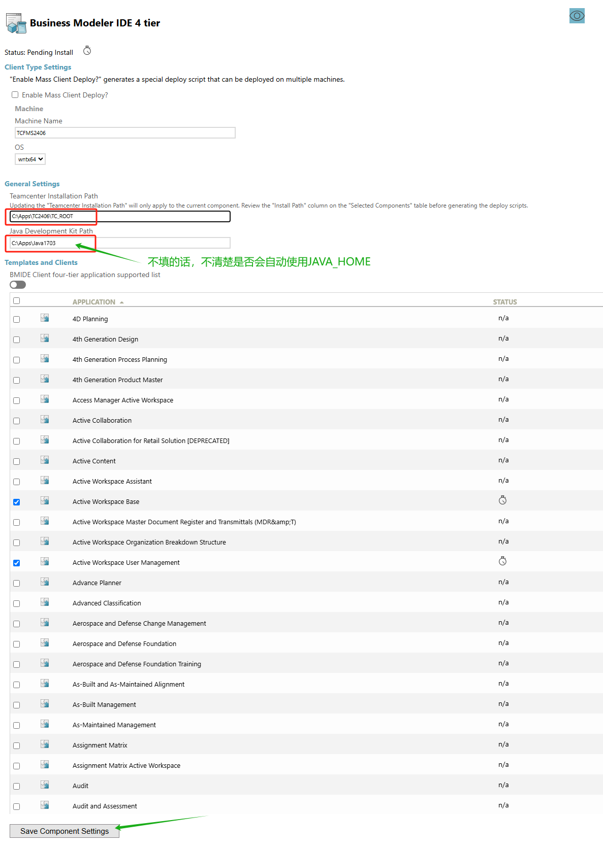 设置完成后点"Save Component setting"保存。
