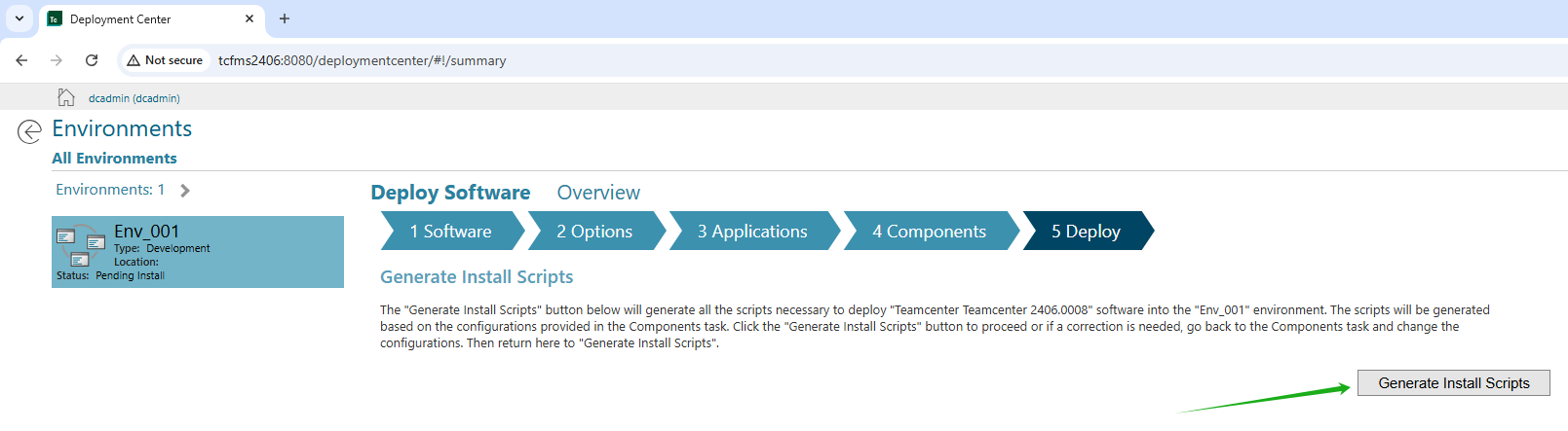 1. 使用浏览器(chrome)打开 http://TCFMS2406:8080/deploymentcenter/ 用户名/密码 是dcadmin/xmz2406X。