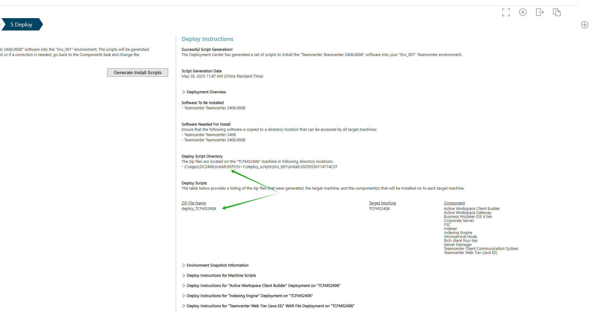 2. 从Deploy Script Directory复制deploy_TCFMS2406.zip到C:\Apps\DC2406\StagingDir目录,并解压缩。
