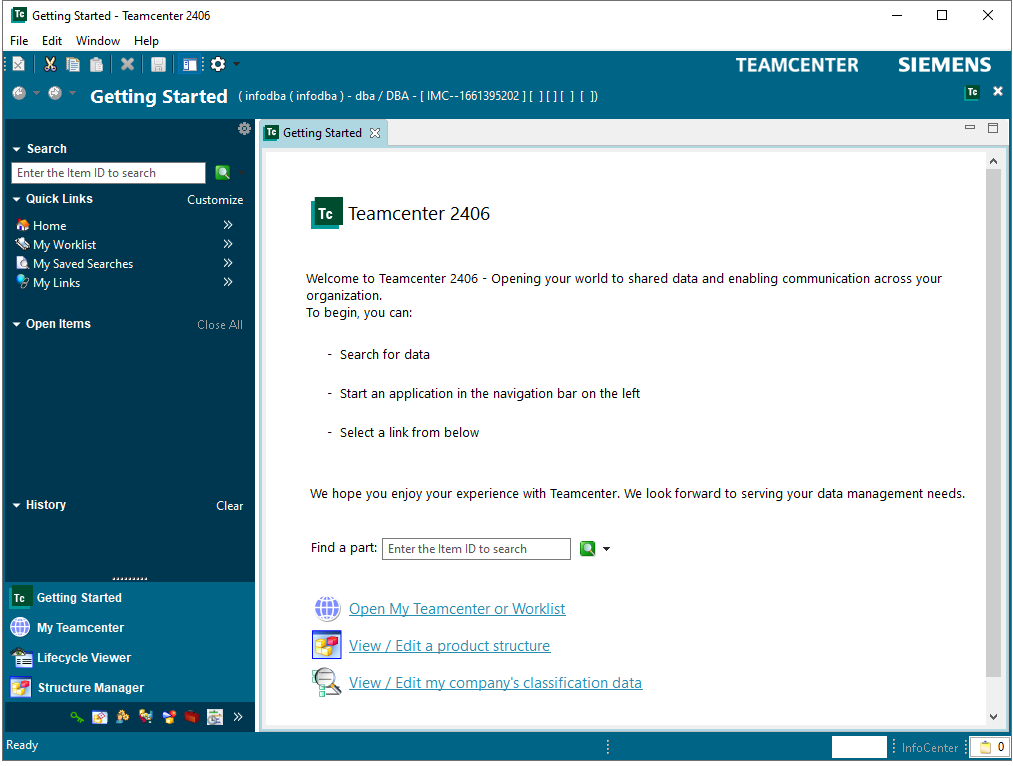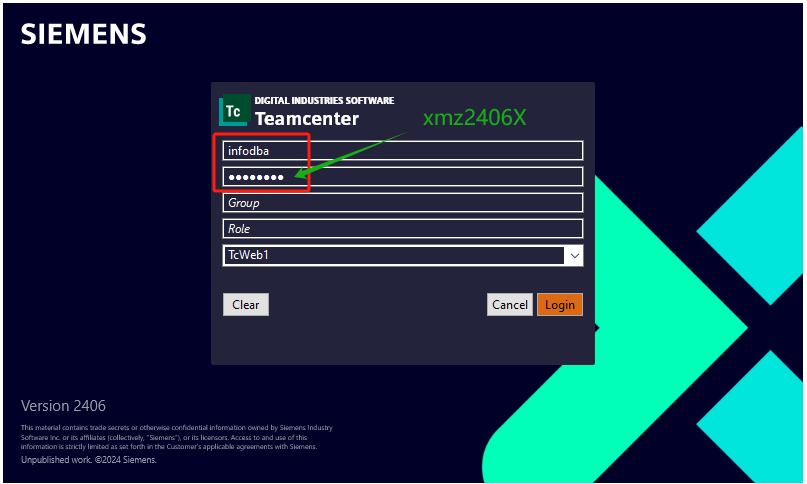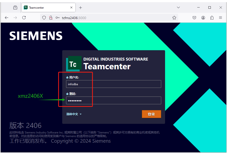 路径参考安装TeamCenter 2406 (上),数据库infodba用户的密码是infodba,TC管理员账号infodba的密码是xmz2406X。Windows登录账号TCFMS2406\Administrator的密码是Start@1234 。