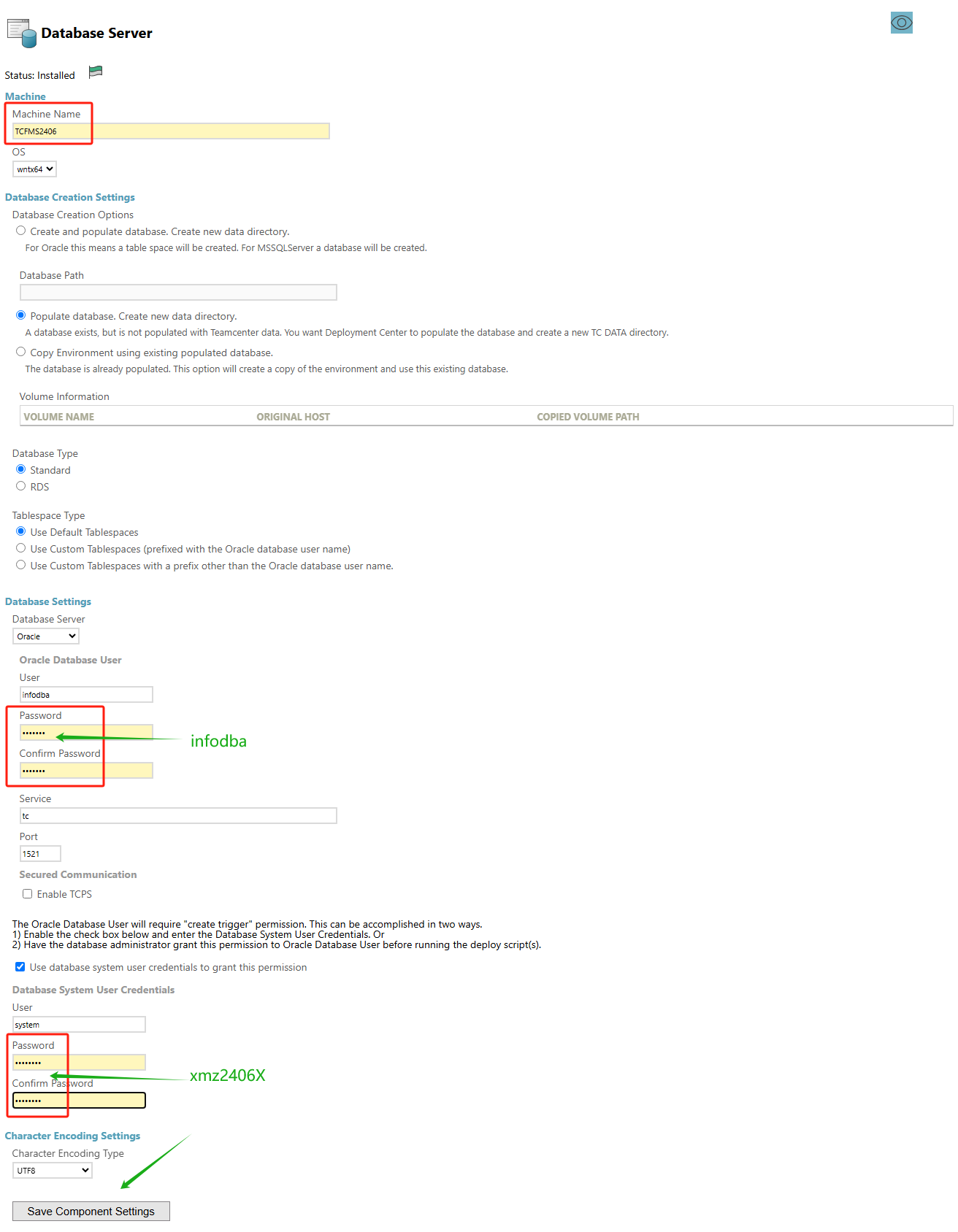 2. Database Server也有三处需要恢复。注意,数据库中infodba用户的密码是infodba,然后TC的管理员用户infodba的密码是xmz2406X,两个不同的。