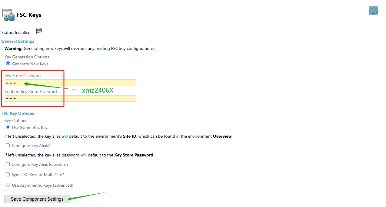 6. FSC Keys,“Generate New Keys”我不知道是否应该新建一次,虽然密码可以改地和之前(中)部输入的内容一致。