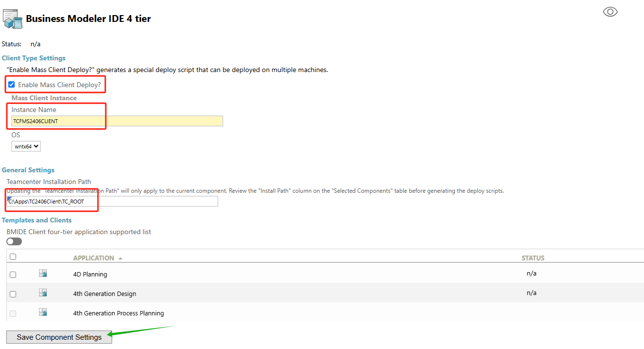 12. Business Modeler IDE 4 tier, 激活 "Enable Mass Client Deploy",并修改实例名称,检查安装路径