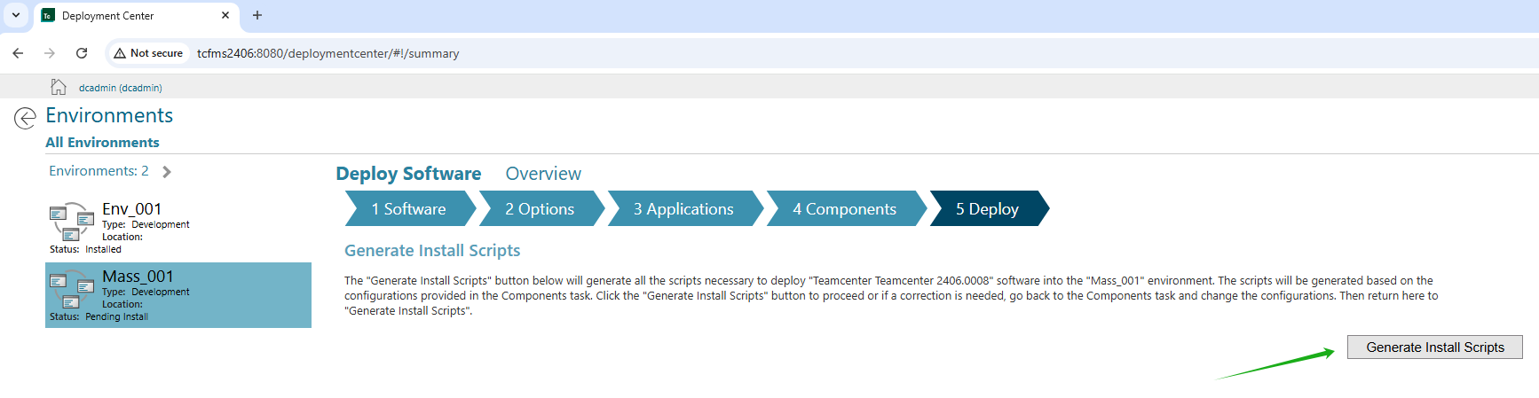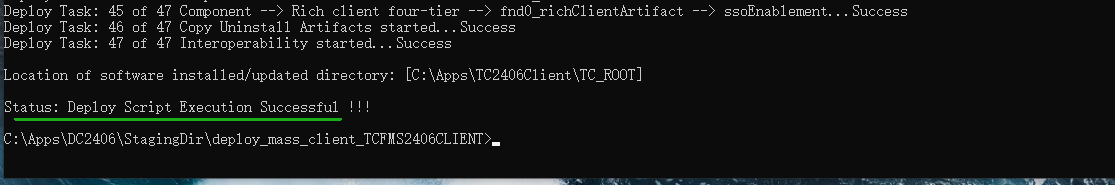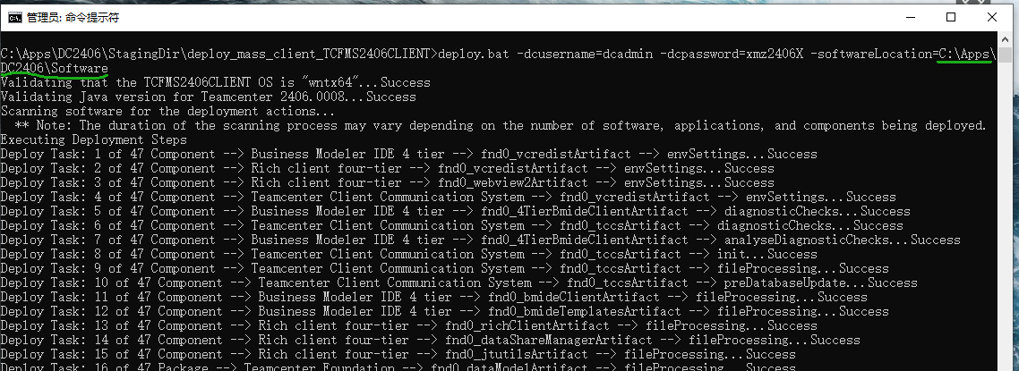 cd C:\Apps\DC2406\StagingDir\deploy_mass_client_TCFMS2406CLIENT .\deploy.bat -dcusername=dcadmin -dcpassword=xmztc12X -softwareLocation=Z:\repository\software
