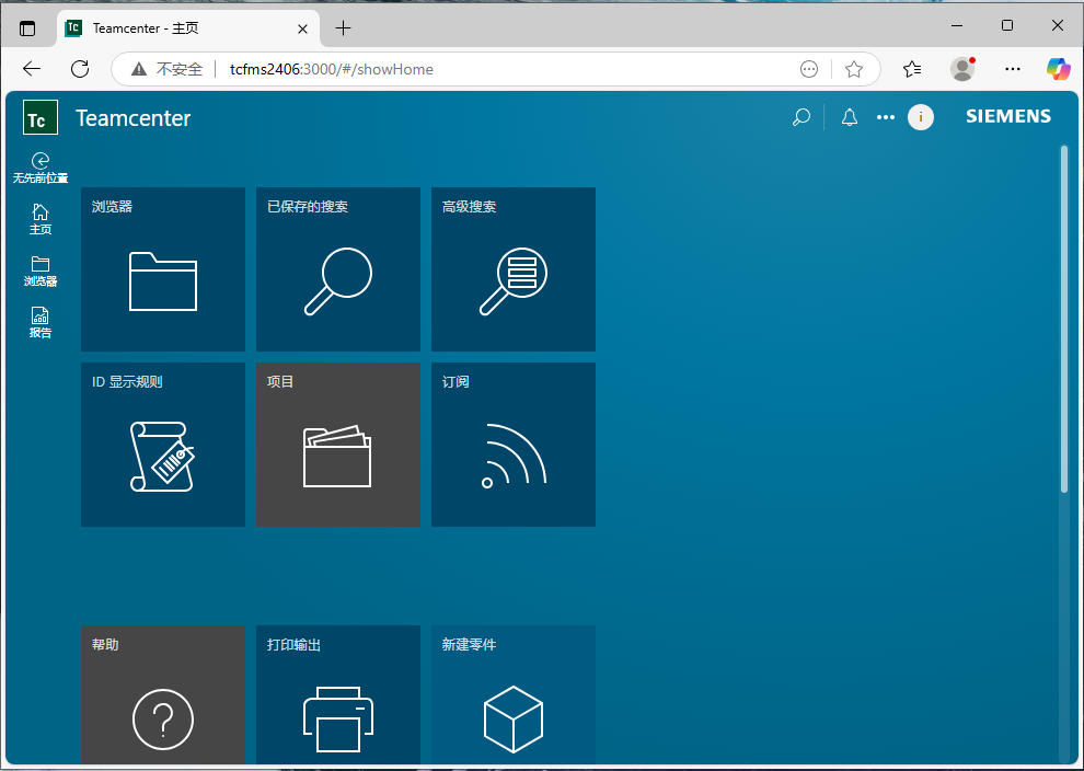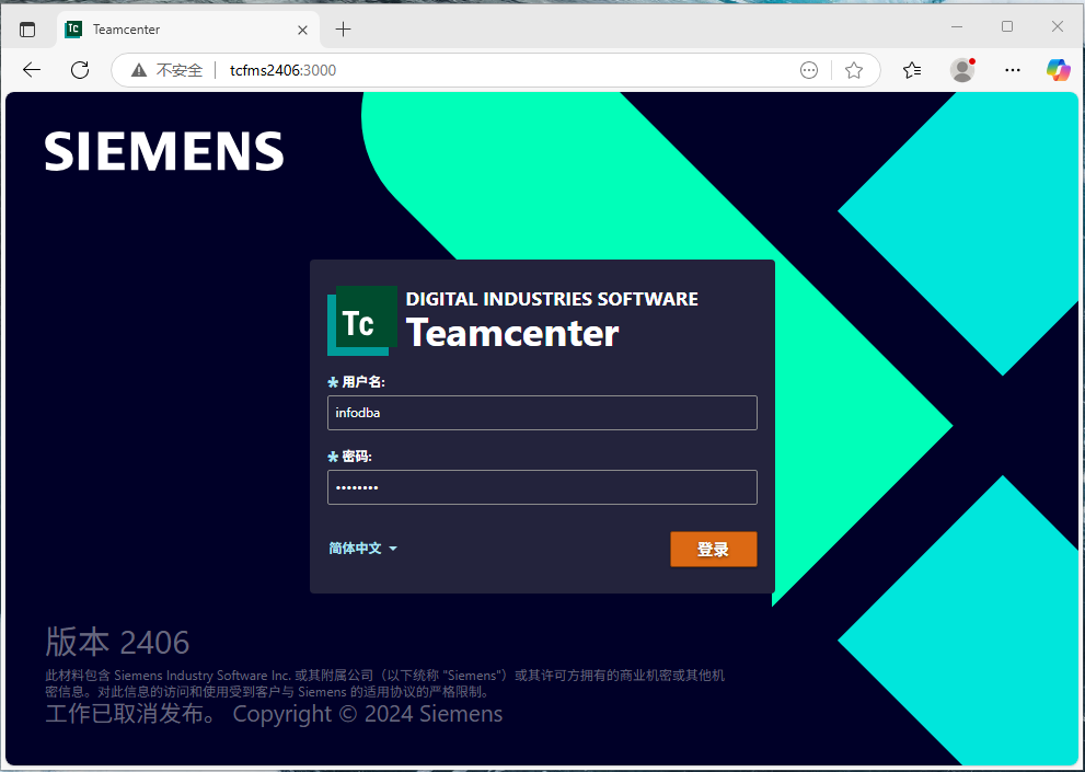3. 还有Active Workspace的网页访问,网址http://TCFMS2406:3000/ 用户名和密码和TC客户端一样。登录页如下