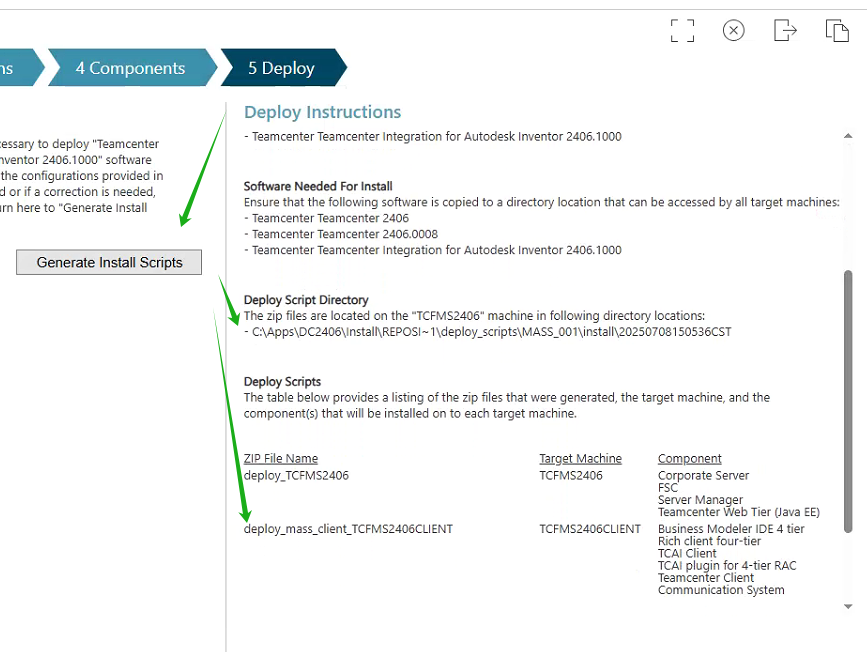 6. 填完这两个组件的参数后,点击到“Deploy”页面。然后点击"Generate Install Scripts" 制作发布包。